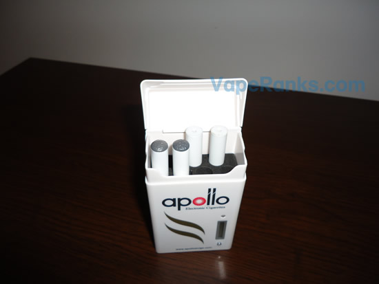 To Apollo’s defense I will say the addition of a PCC makes things a lot easier. Normally, a person who smoked 15 – 20 cigarettes a day, or more, would have to charge the batteries at least once a day, which could be problematic. There may not always be a power source available, but thanks to the charging case you don’t need one. The handy gadget charges your battery while you handle your business, and also provides storing space for five cartomizers and your extra battery. It normally takes about 1.5 to 2 hours to recharge a battery, during which time you can use the spare. And the best thing is a fully charged PCC can charge your batteries 5 – 8 times before it runs out of power. It has a small LED screen that shows you just how much juice there is left, and when the battery inside is fully charged. The portable charging case was designed to look like a pack of analog smokes, only it’s a lot bulkier. While it may not fit seamlessly in your pocket, this thing is definitely handy, so a big plus for Apollo on this one.